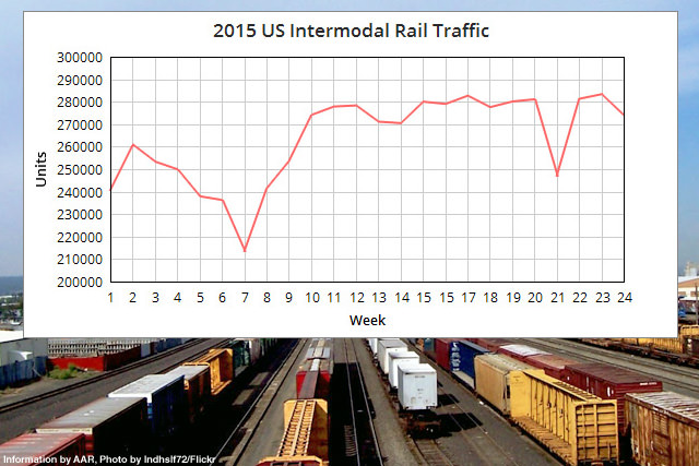 Intermodal traffic increased 1.6% from the same week last year to 276,907 intermodal trailers and containers, AAR announced June 24 in its weekly report.